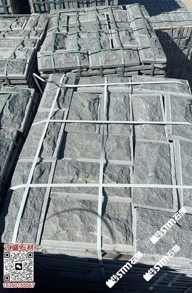 長泰芝麻黑自然面背景墻蘑菇石劈裂石長泰654小方塊