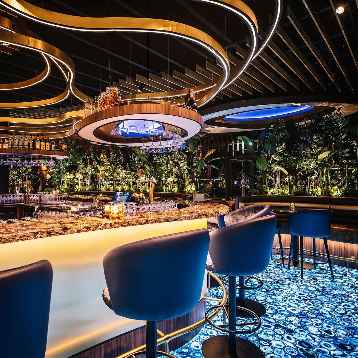 發(fā)布信息: 天然藍(lán)瑪瑙透光地板,應(yīng)用于網(wǎng)紅餐廳地面裝飾