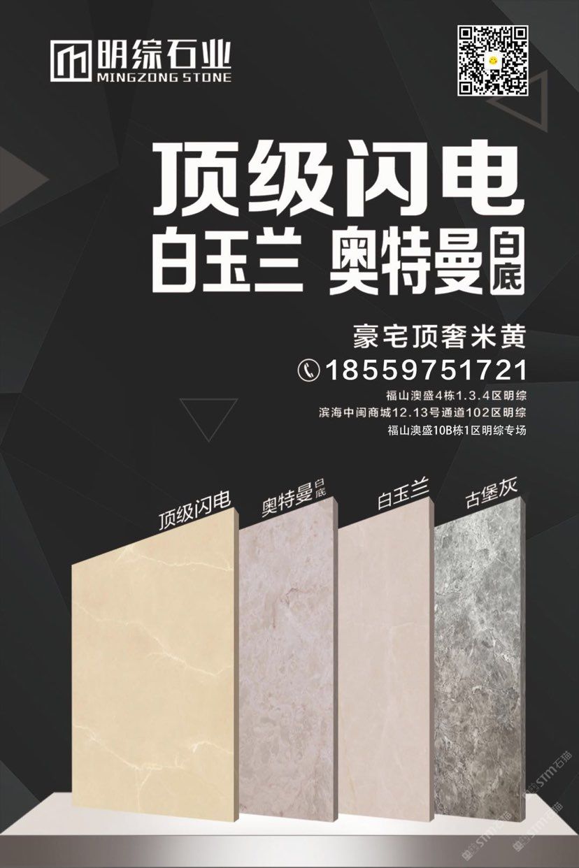發(fā)布信息: 【明綜石業(yè)】 匠造之心 明之造,綜以恒 品種 專(zhuān)場(chǎng)經(jīng)營(yíng) 量大價(jià)優(yōu) *閃電·新莎安娜*奧特曼*白玉蘭 ??:18559751721 銷(xiāo)售地點(diǎn): 水頭澳盛市場(chǎng)4棟1.3.4區(qū)明綜/10棟1區(qū)明綜專(zhuān)場(chǎng)/水頭中閩石材商城102區(qū)明綜