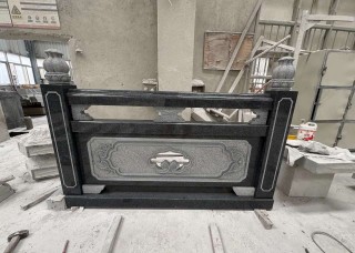橋面欄桿石材芝麻黑花崗巖浮雕圍欄石護(hù)欄河道石欄桿
