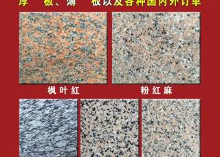 廣西新陽光石業(yè)主營產(chǎn)品:楓葉紅,廣西浪花白,大白花(G439),古典灰,芭拉白,西麗紅(G498),海棠紅企業(yè)地址:福建南安水頭鎮(zhèn)建材市場加工新區(qū)B棟46號